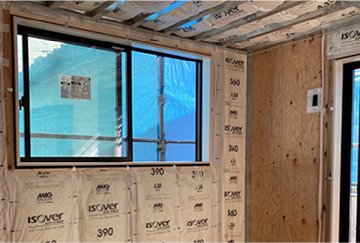 上棟を終えた骨組みだけの建物に外壁の下地や窓、内部の天井や壁を作るなど外部から内装までを一貫して行う仕事です。床や階段などそのまま仕上がりに直結する工程が多く私たちの仕事には精度や綿密さが求められます。